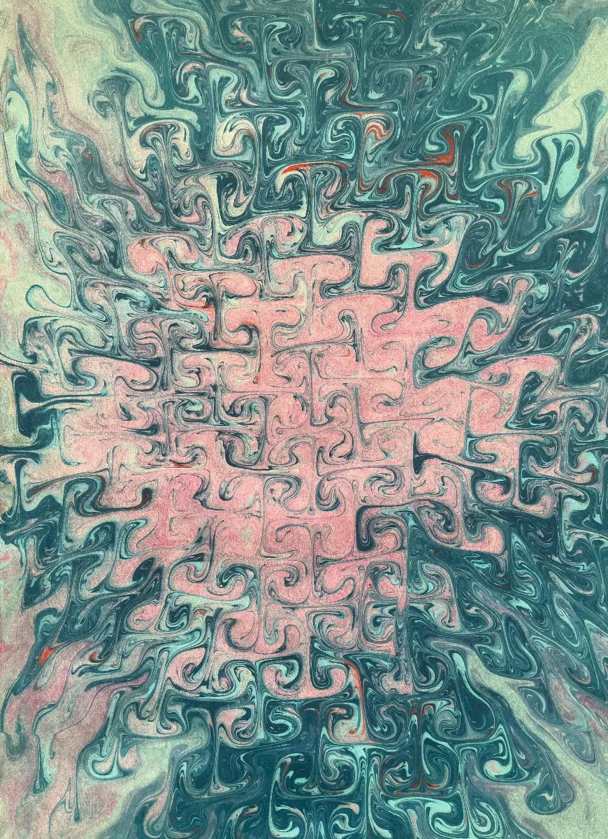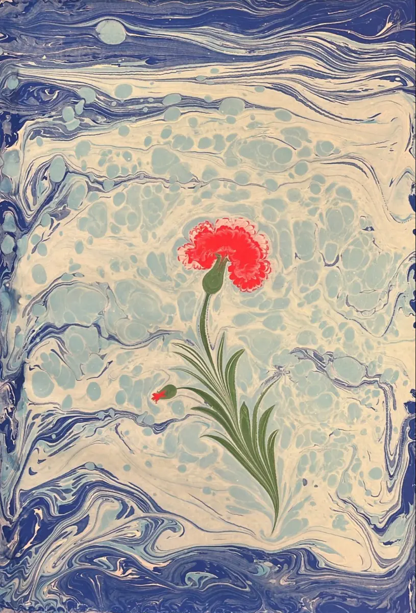 Ebru: 5 renkten oluşan neftli battal ebrusu kullanılmıştır.